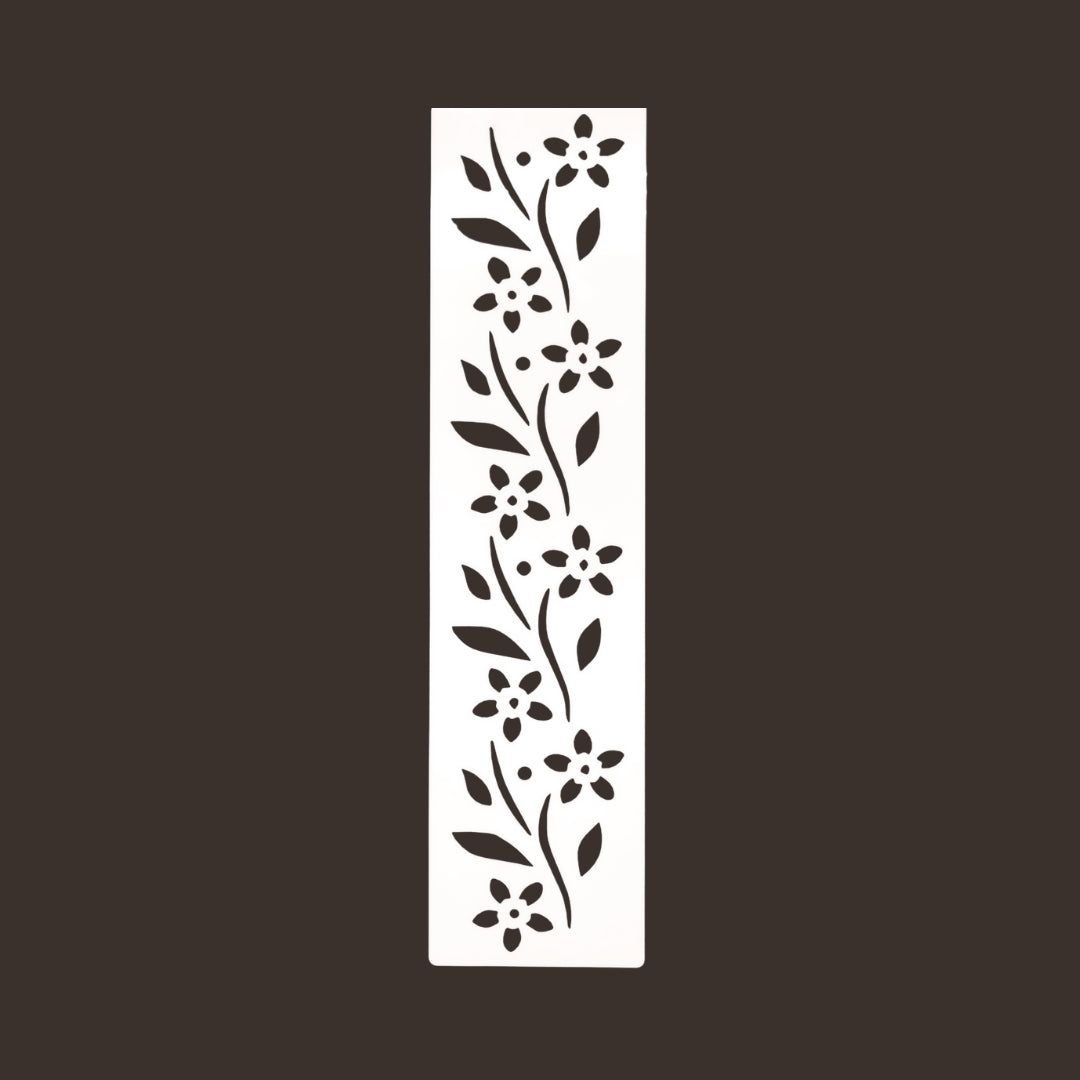 Boordi sabluuna. Koko: 8x30cm. Sapluuna on noin 1 mm paksuinen valkoinen muovikalvo, jonka voit aina pestä ja käyttää uudelleen. Pesuun toimii Fusion Mineral Paint sarjan maalien kanssa parhaiten mäntysuopa.