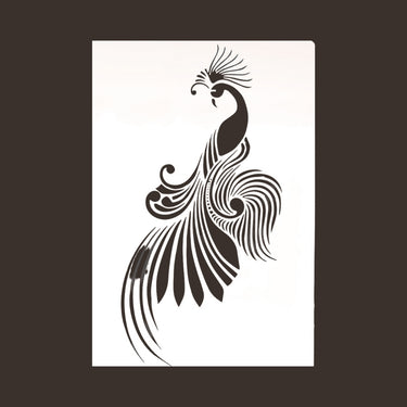 Koristeellinen riikinkukko, peacock aiheinen sabluuna. Koko: 18x26cm. Koristeellinen riikinkukko, peacock aiheinen sabluuna. Koko: A4. Sapluuna on noin 1 mm paksuinen valkoinen muovikalvo, jonka voit aina pestä ja käyttää uudelleen. Pesuun toimii Fusion Mineral Paint sarjan maalien kanssa parhaiten mäntysuopa.