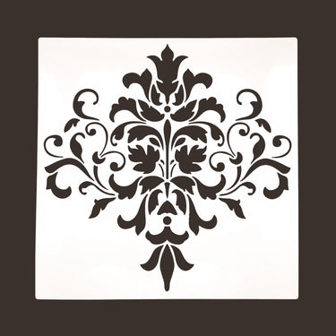 Damask- kuvioinen sabluuna kalusteen, seinän, lattian tms. koristeluun. Koko: 30x30cm. Sapluuna on noin 1 mm paksuinen valkoinen muovikalvo, jonka voit aina pestä ja käyttää uudelleen. Pesuun toimii Fusion Mineral Paint sarjan maalien kanssa parhaiten mäntysuopa.