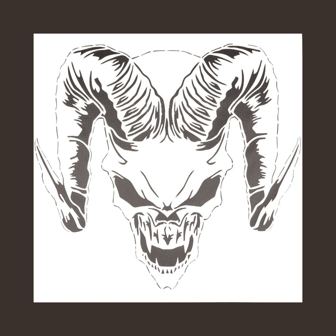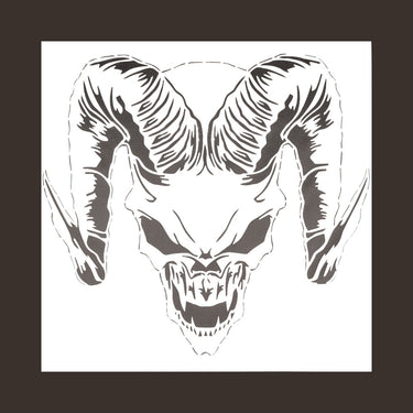 Pääkallo aiheinen sabluuna kalusteen, seinän, lattian tms. koristeluun. Koko: 30x30cm. Sapluuna on noin 1 mm paksuinen valkoinen muovikalvo, jonka voit aina pestä ja käyttää uudelleen. Pesuun toimii Fusion Mineral Paint sarjan maalien kanssa parhaiten mäntysuopa.
