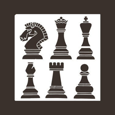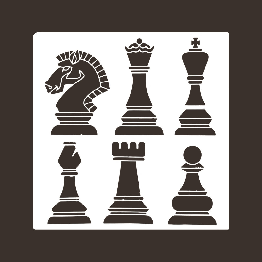 Shakki aiheinen sabluuna kalusteen, seinän, lattian tms. koristeluun. Koko: 30x30cm. Sapluuna on noin 1 mm paksuinen valkoinen muovikalvo, jonka voit aina pestä ja käyttää uudelleen. Pesuun toimii Fusion Mineral Paint sarjan maalien kanssa parhaiten mäntysuopa.