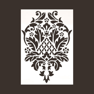 Iso koristeellinen damask kuvioinen sapluuna. Koko: A4. Sapluuna on noin 1 mm paksuinen valkoinen muovikalvo, jonka voit aina pestä ja käyttää uudelleen. Pesuun toimii Fusion Mineral Paint sarjan maalien kanssa parhaiten mäntysuopa.