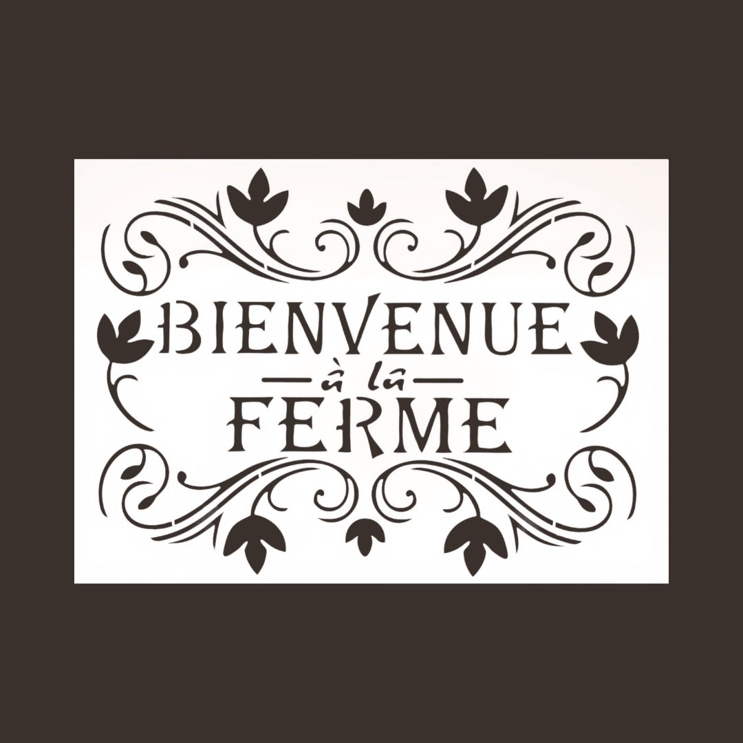 Bienvenue á la Ferme "Tervetuloa maatilalle" kyltti aiheinen sabluuna, vanha kyltti. Koko: A4. Sapluuna on noin 1 mm paksuinen valkoinen muovikalvo, jonka voit aina pestä ja käyttää uudelleen. Pesuun toimii Fusion Mineral Paint sarjan maalien kanssa parhaiten mäntysuopa.