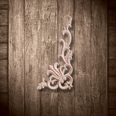 Puukoriste aitoa puuta käytettäväksi esim. huonekalujen koristeluun. Ei sisällä muovia.
