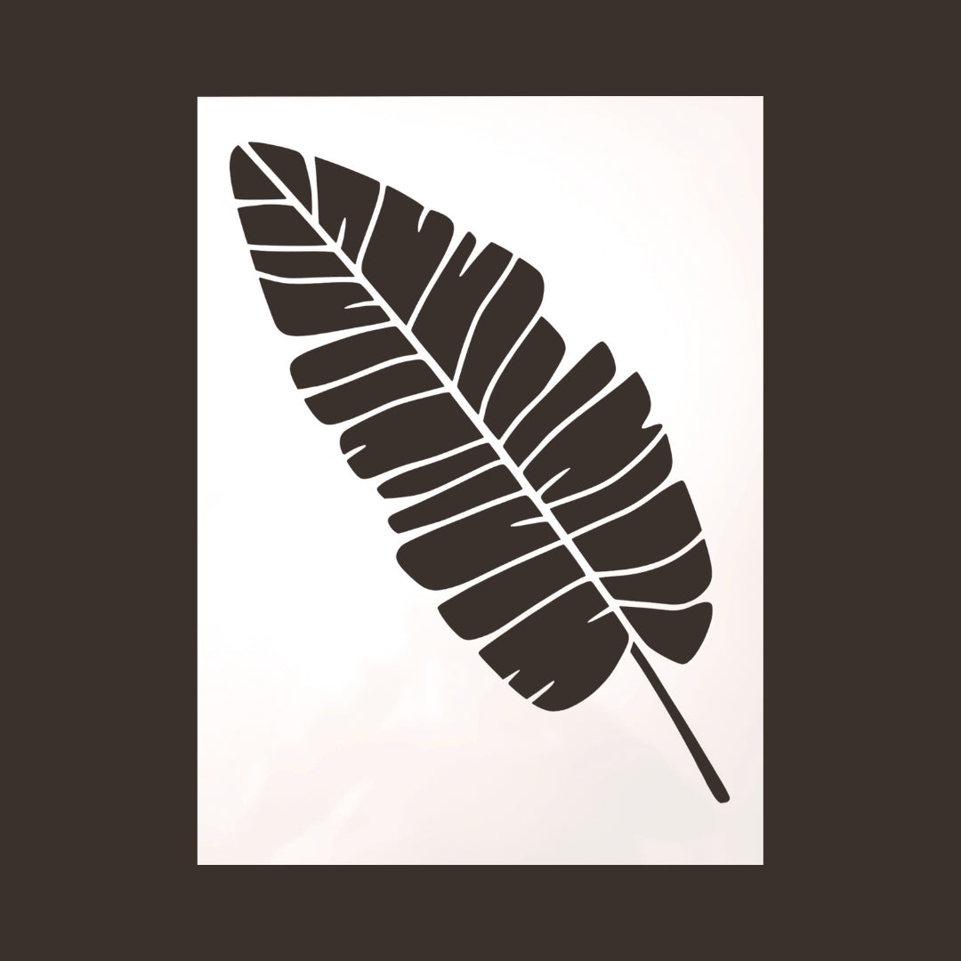 Suurikuvioinen kasvin lehti sabluuna kalusteen, seinän, lattian tms. koristeluun. Koko: noin 30x40cm. Sapluuna on noin 1 mm paksuinen valkoinen muovikalvo, jonka voit aina pestä ja käyttää uudelleen. Pesuun toimii Fusion Mineral Paint sarjan maalien kanssa parhaiten mäntysuopa.