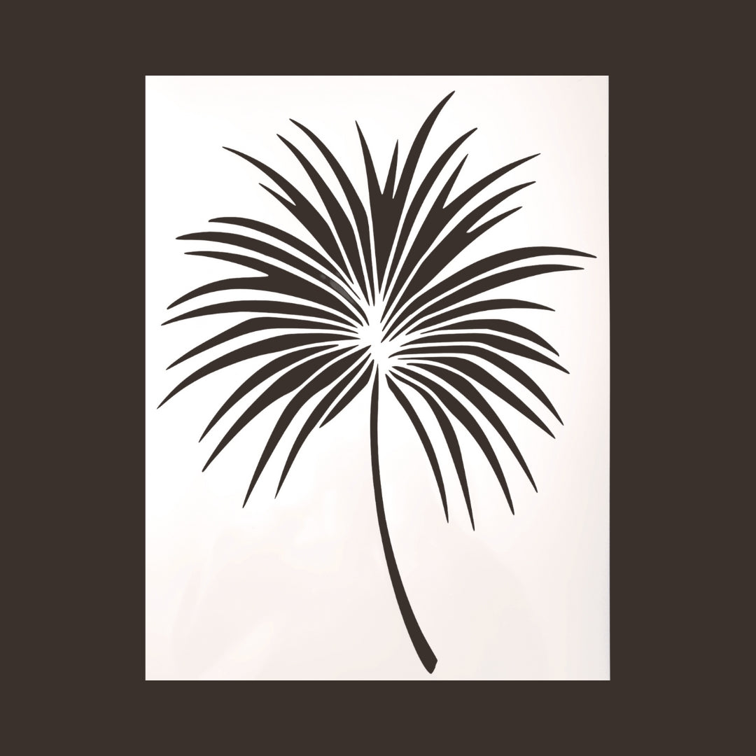 Suurikuvioinen kasvin lehti sabluuna kalusteen, seinän, lattian tms. koristeluun. Koko: noin 30x40cm. Sapluuna on noin 1 mm paksuinen valkoinen muovikalvo, jonka voit aina pestä ja käyttää uudelleen. Pesuun toimii Fusion Mineral Paint sarjan maalien kanssa parhaiten mäntysuopa.