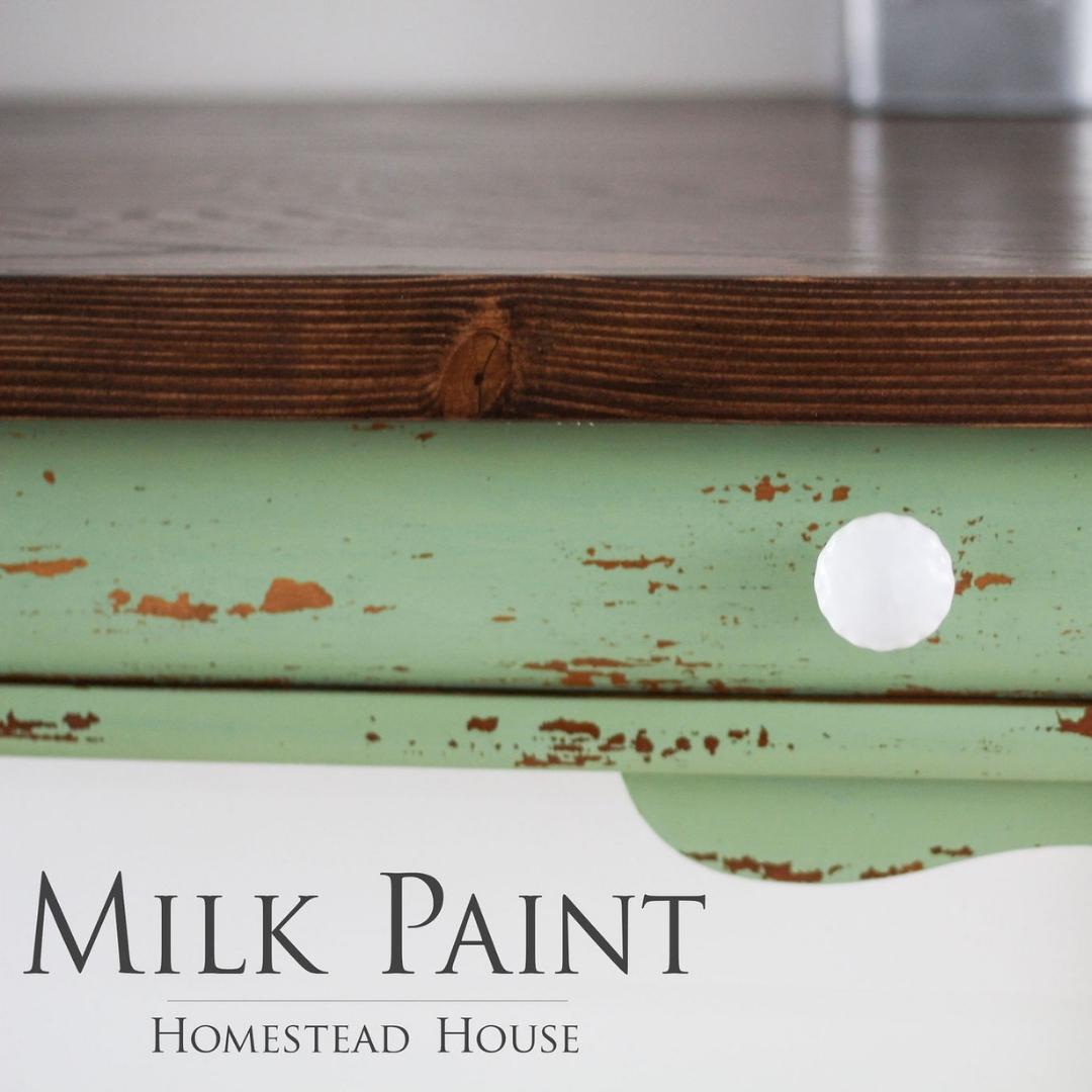 Pintakäsittely: Maitomaali ei kestä kulutusta, joten laita maalin päälle hamppuöljy, tung oil tai sarjan Tough Coat lakkapinnoite lisäämään kestävyyttä. Voit maalata maitomaalilla myös Fusion mineraalimaalin päälle, jolloin maitomaali halkeilee pinnaltaan ja saat näin kalusteen pinnasta vanhan näköisen.
