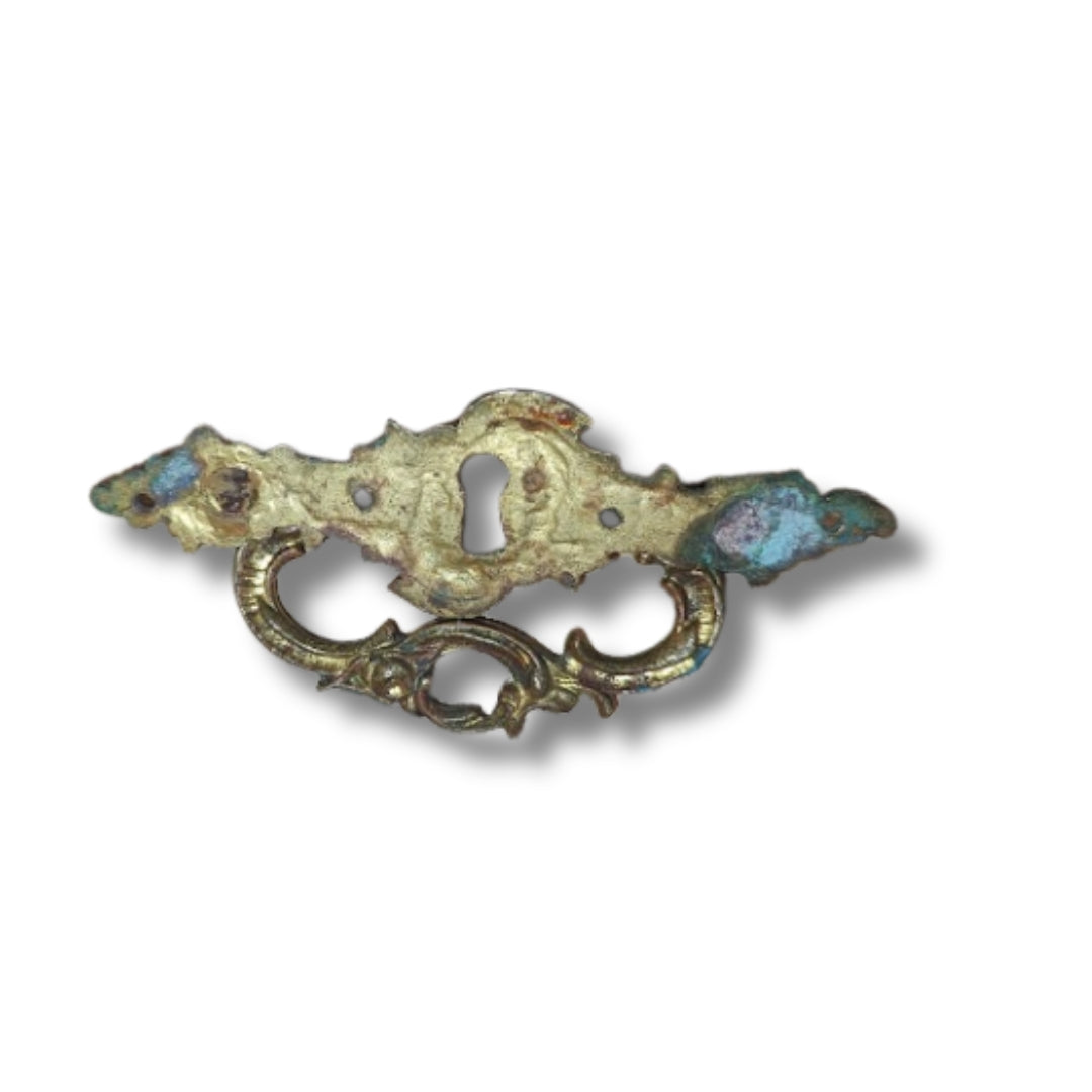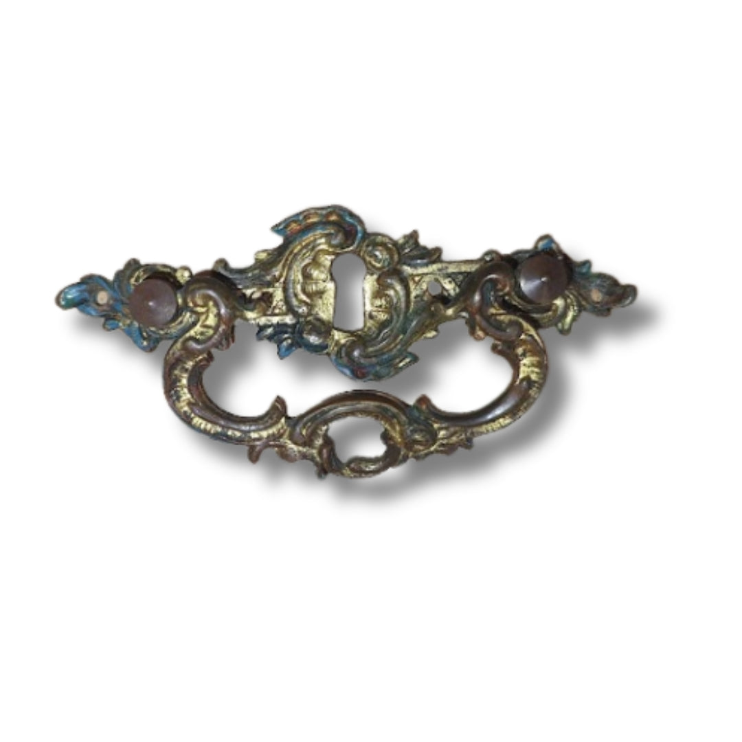 Antiikkiset rokokoo tyyliset messinkivetimet avaimenreiällä - Patinaa, patinaa ja patinaa!