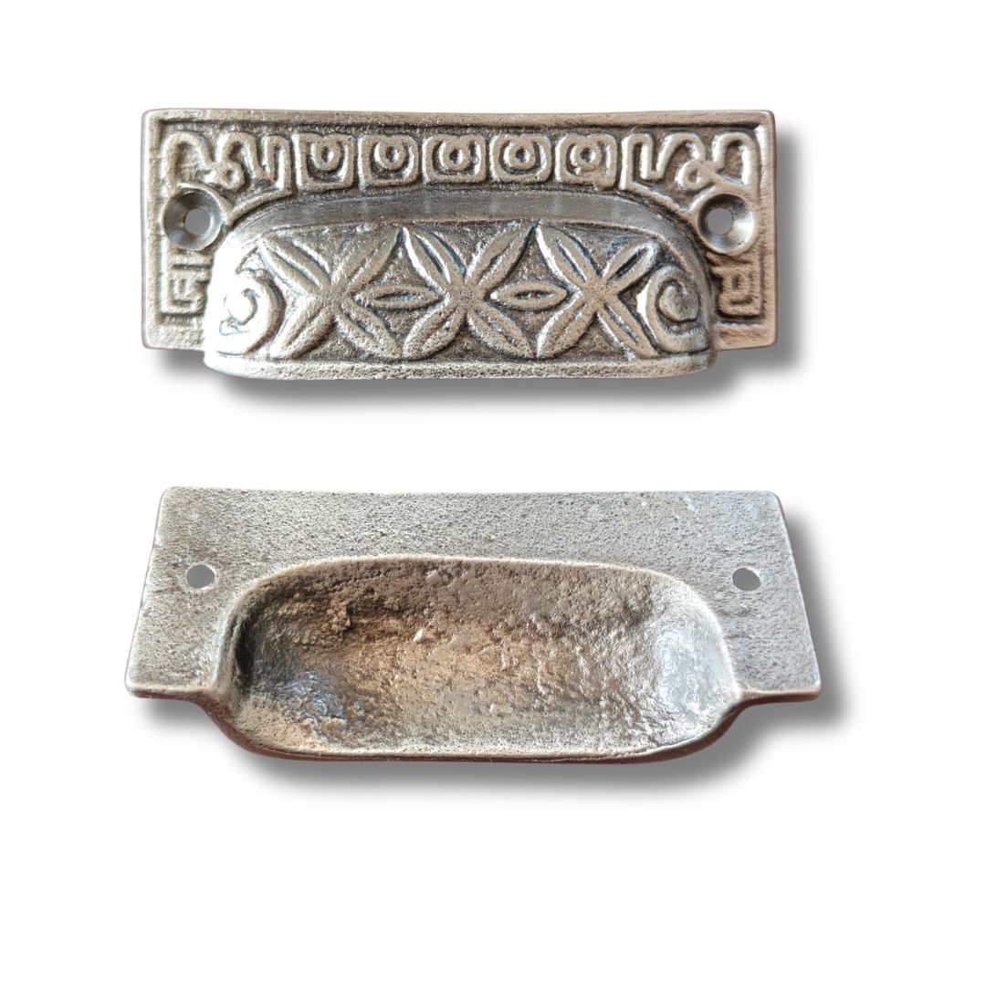 Kuviollinen vanha intialainen kuppivedin esim. laatikkoon. Sisältää ruuvit.
